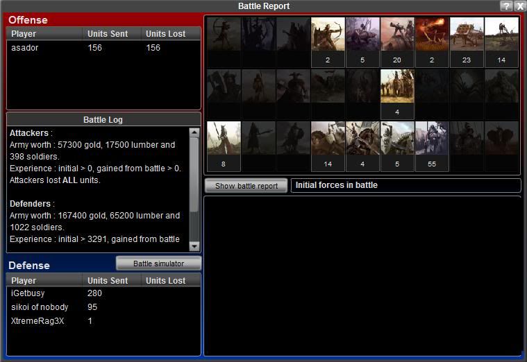 And how do you not count our first battle as a win.. we send 6000 units you send 7000 and we still won and didnt lose any range.. I'd say that's about as near as a win as you can get we lost 200k gold you lost 700k gold 200k lumber ??